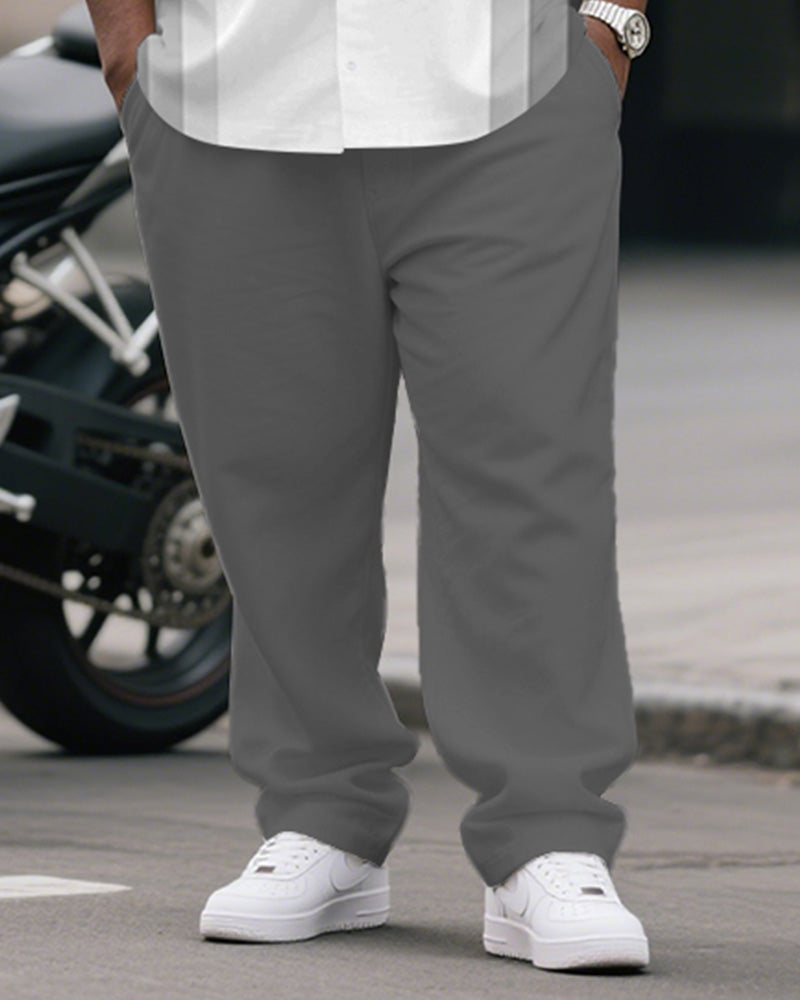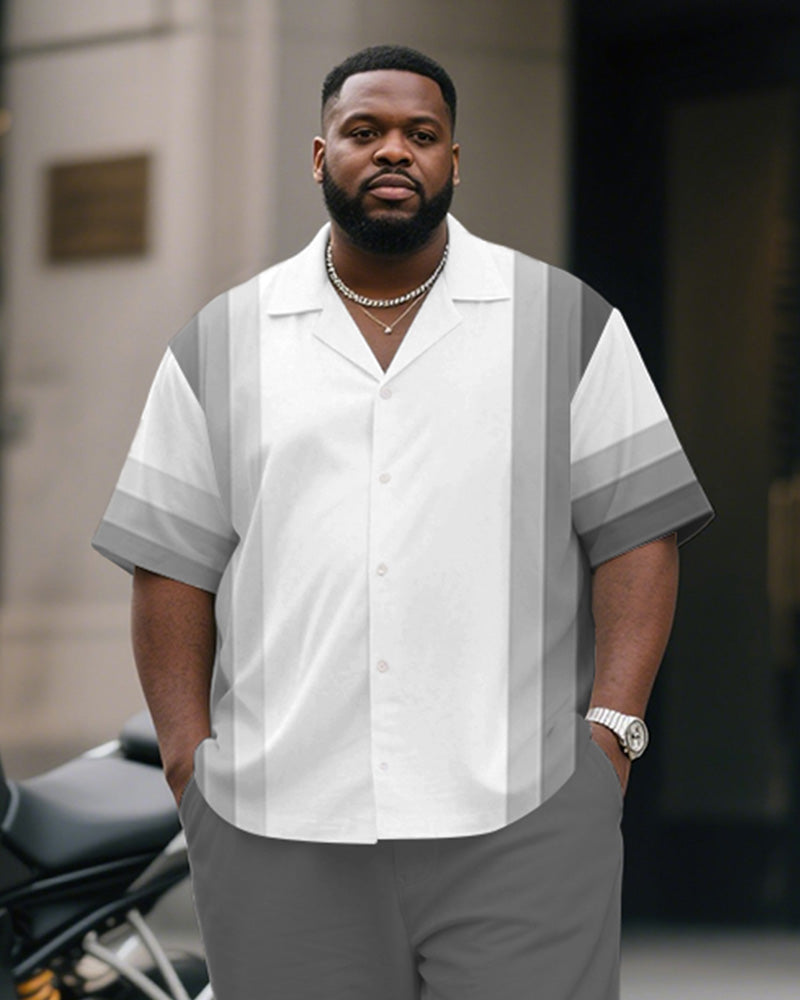 Men's Plus Size Business Gray Gradient Stripe Print Short Sleeve Shirt Trousers Suit