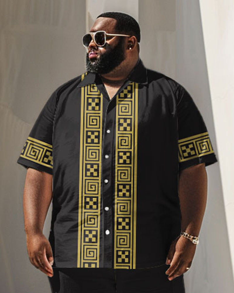 Men's Plus Size Business Greek Key Geometric Print Short Sleeve Shirt Suit