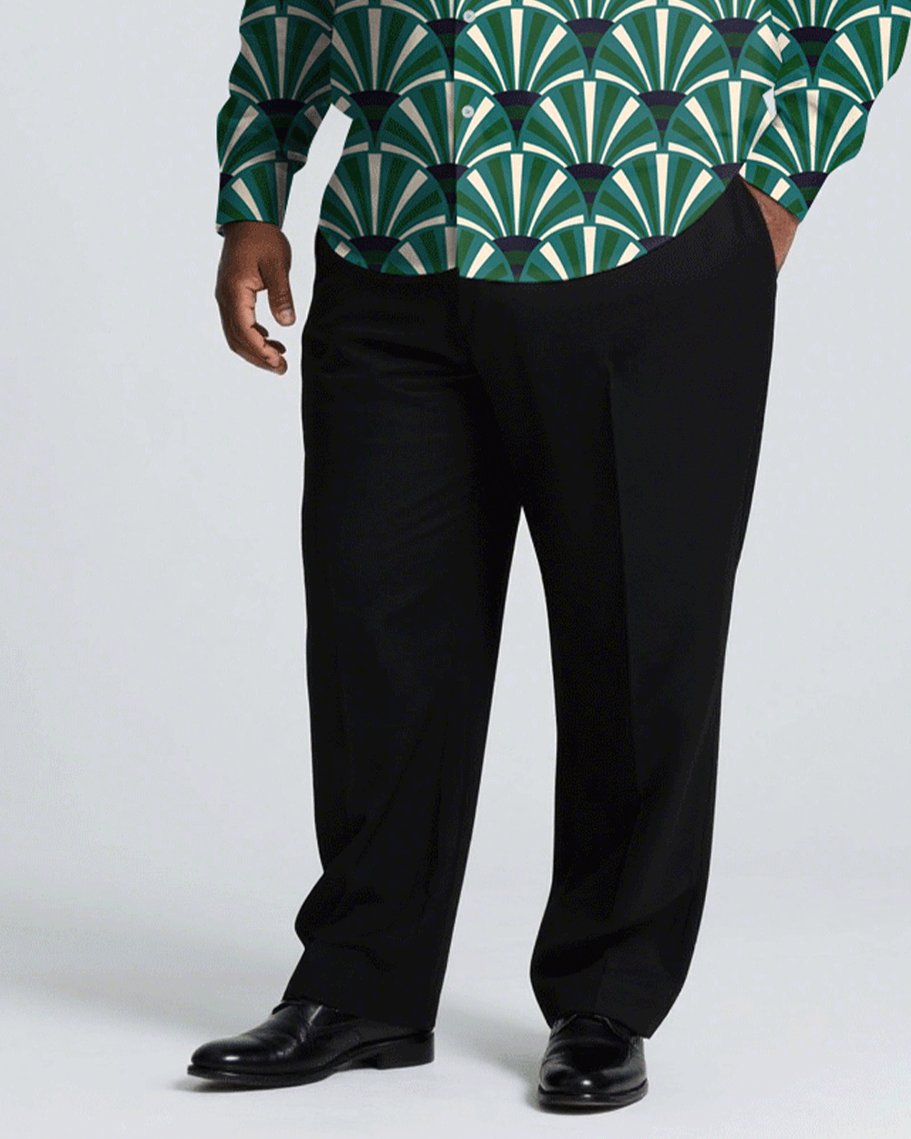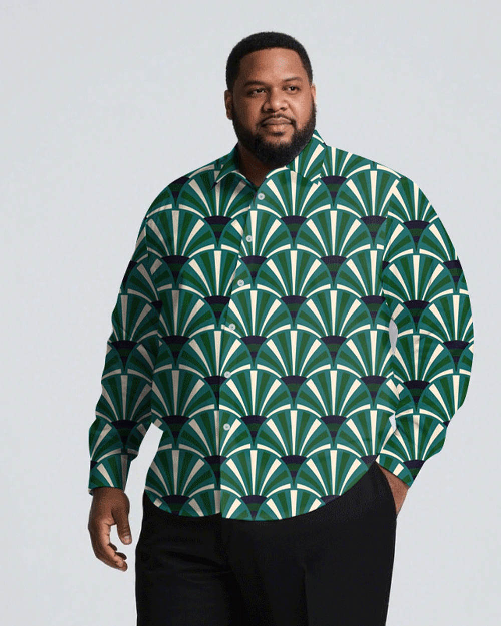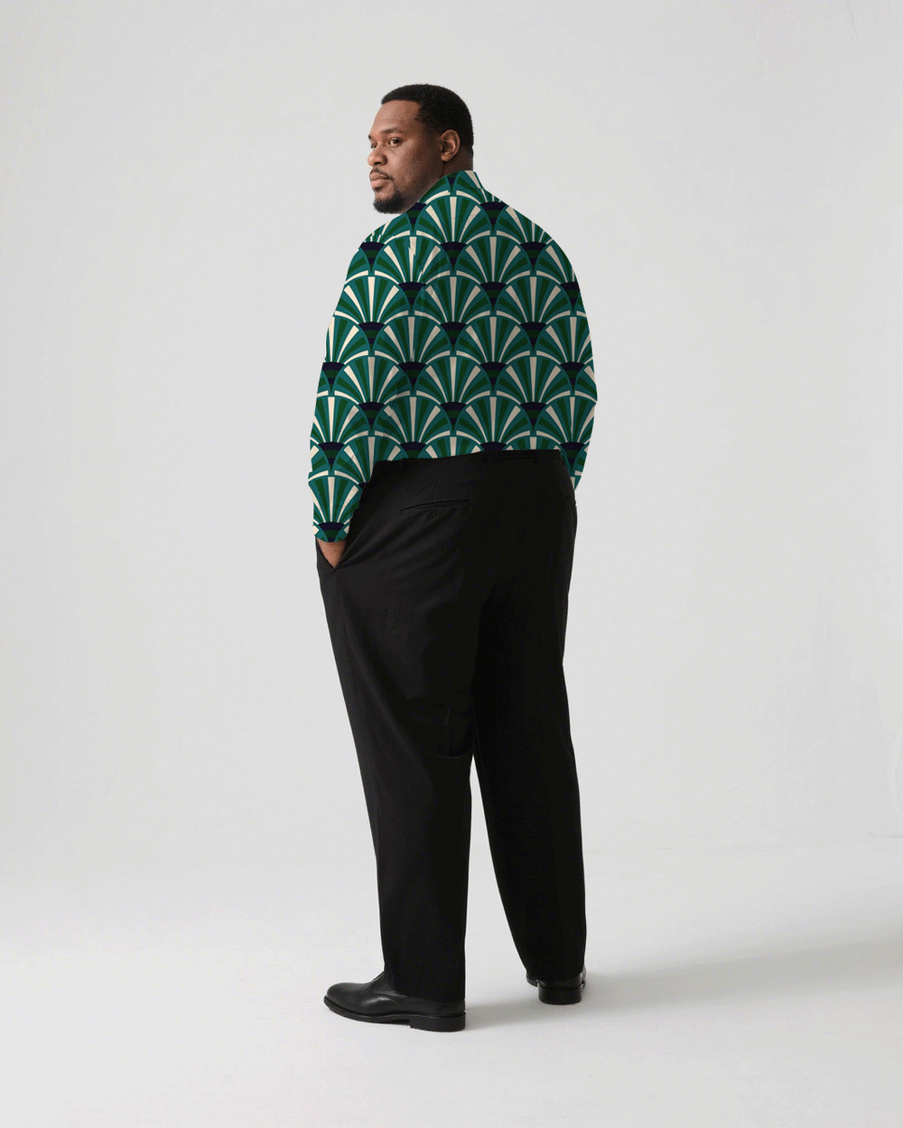 Men's Plus Size Business Green Court Pattern Style Printed Long Sleeve Shirt Trousers Suit