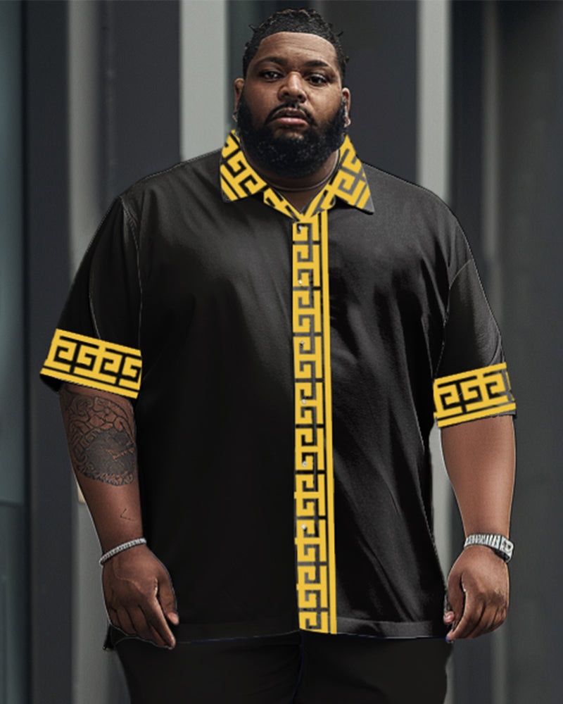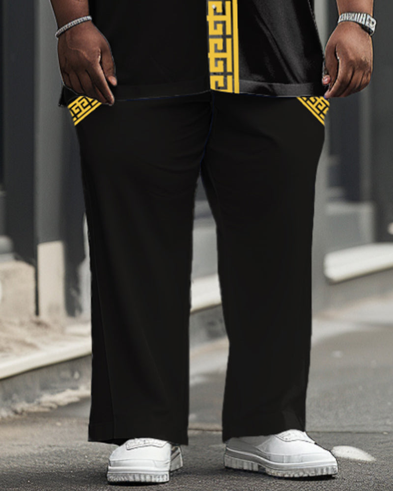 Men's Plus Size Business Hugh Collar Cuff Pants Pocket Printed Short Sleeve Shirt Suit