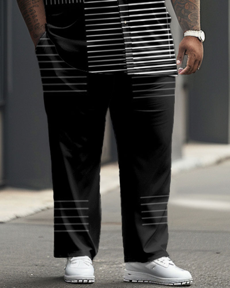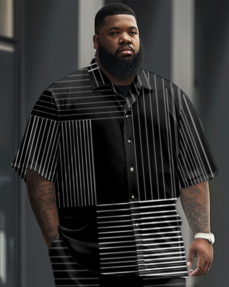 Men's Plus Size Business Irregular Geometric Stripe Print Short Sleeve Shirt Suit