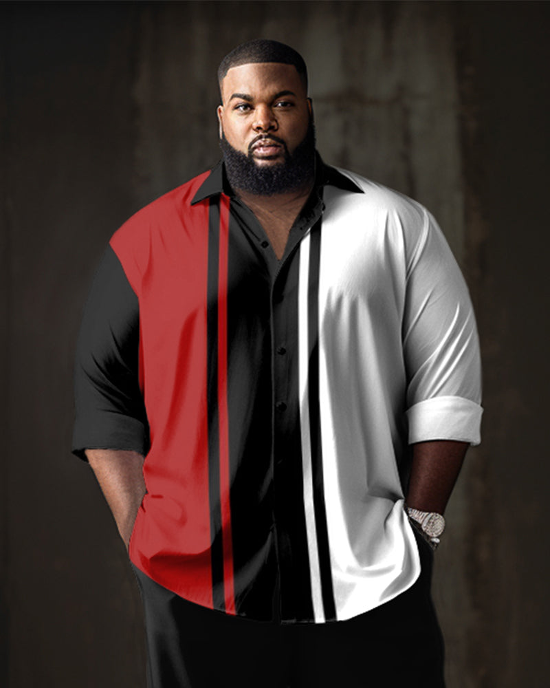 This two-piece set features a color-blocking design in red, black, and white, showing a simple yet fashionable style. The lapel design adds a classic sense of elegance to the whole outfit. The simple design contains unique fashion features. Whether you go, this men's two-piece set can easily cope with it.