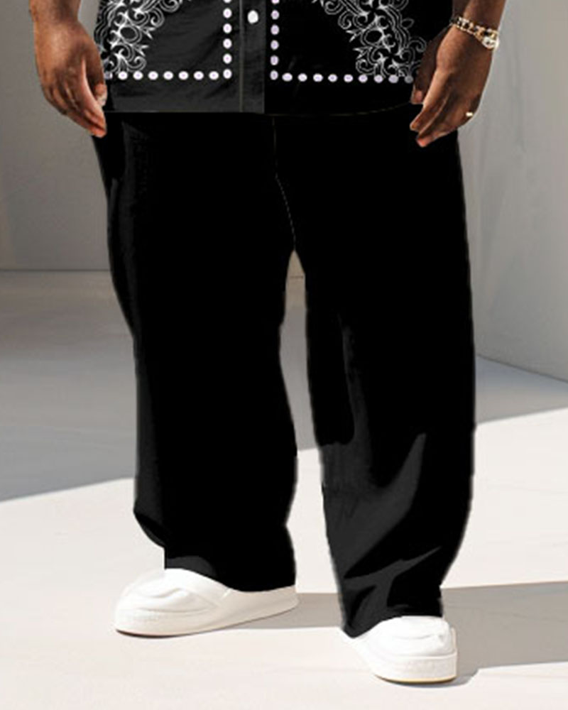 Men's Plus Size Business Retro Black Printed Short Sleeve Shirt Suit