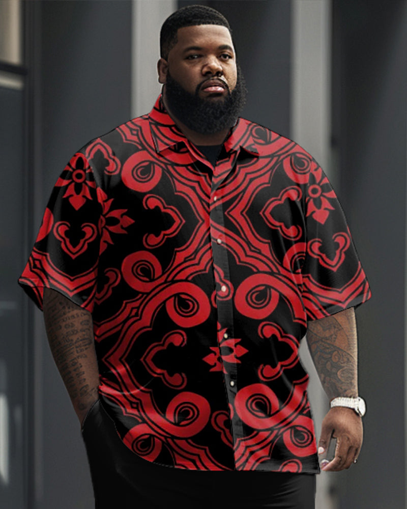 Men's Plus Size Business Retro Pattern Printing Short Sleeve Shirt Trousers Suit