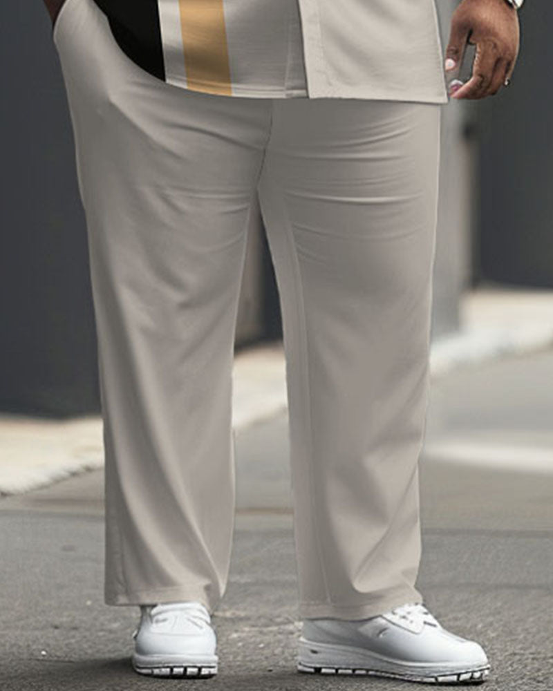 Men's Plus Size Business Simple Color Matching Striped Printed Short Sleeve Shirt Suit