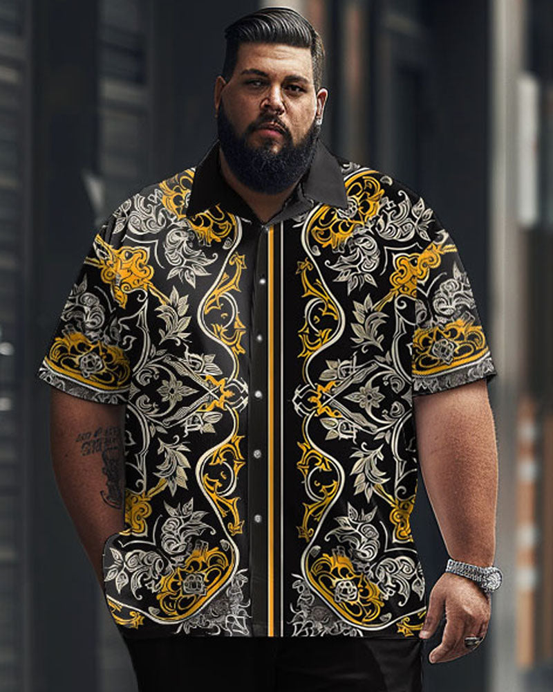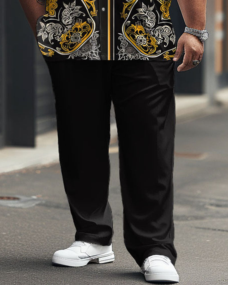 Men's Plus Size Business Simple Geometric Yellow Short Sleeve Shirt Trousers Suit