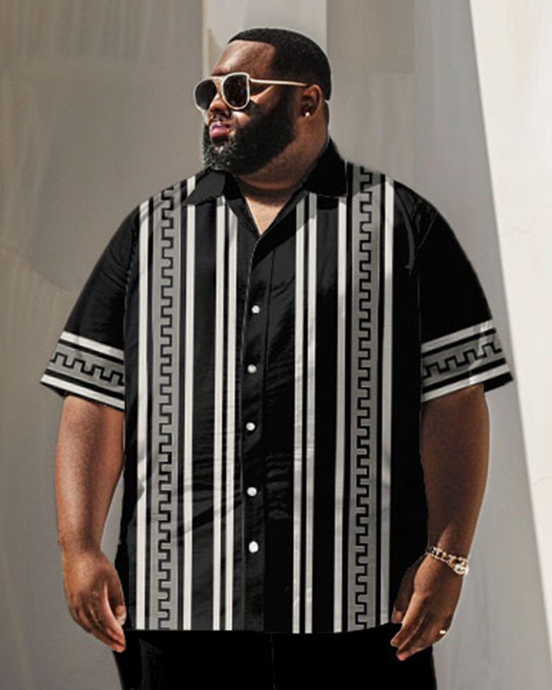 Men's Plus Size Business Simple Greek Geometric Stripe Print Short Sleeve Shirt Suit
