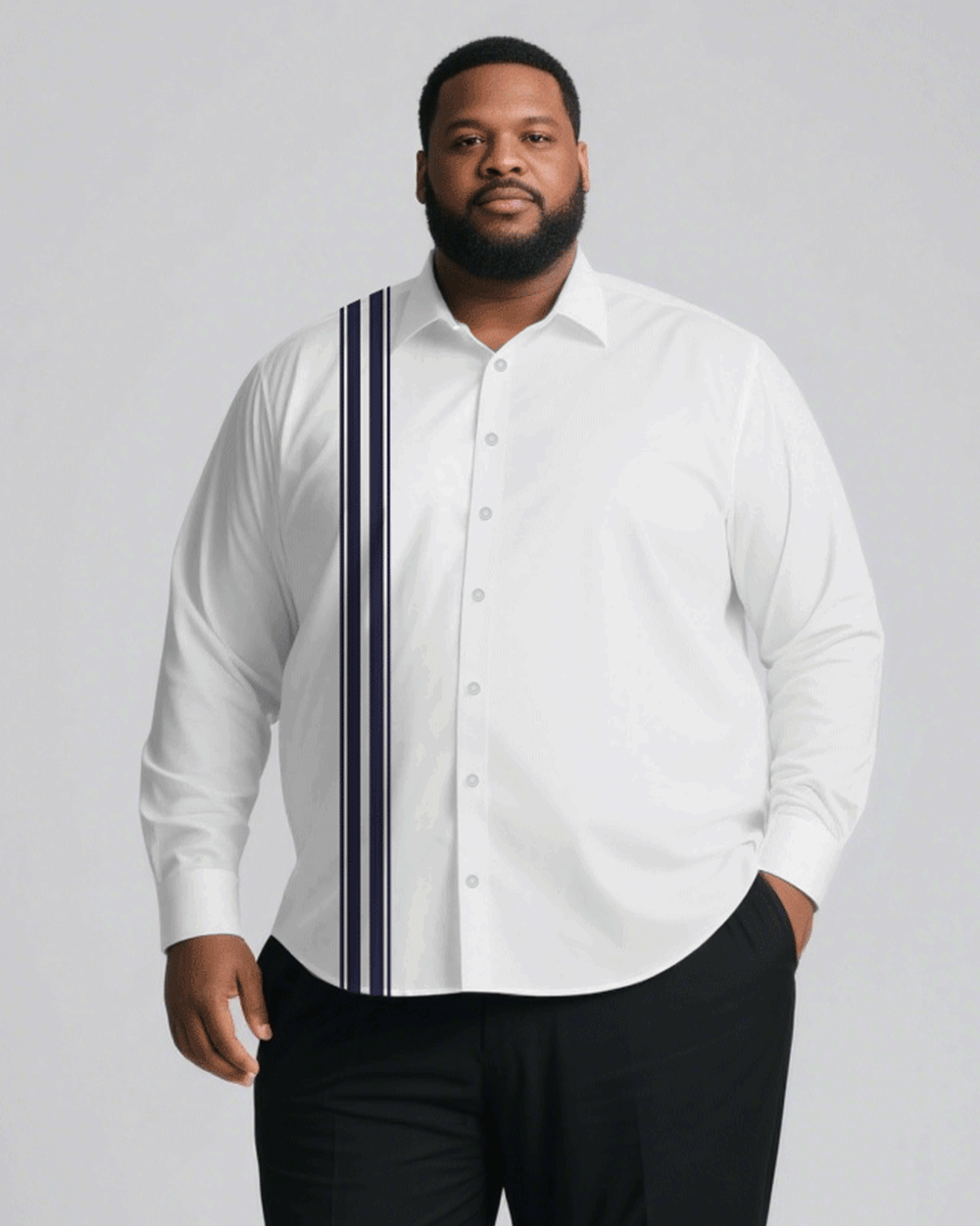 Men's Plus Size Business White Colorblock Striped Print Long Sleeve Shirt Trousers Suit