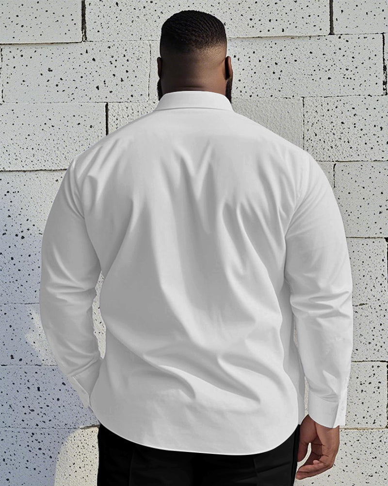Men's Plus Size Business White Simple Corrugated Print Long Sleeve Shirt