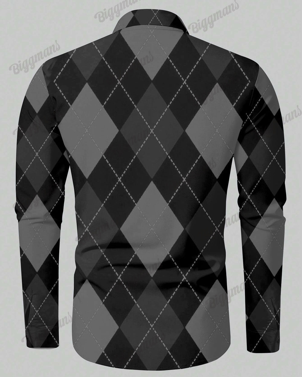 Elevate your style with our black diamond long-sleeve shirt. With a classic pattern design, this shirt is designed for comfort and flair. The black and gray combination never goes wrong. Perfect for a polished yet relaxed look. It's ideal for larger builds, offering style and comfort.