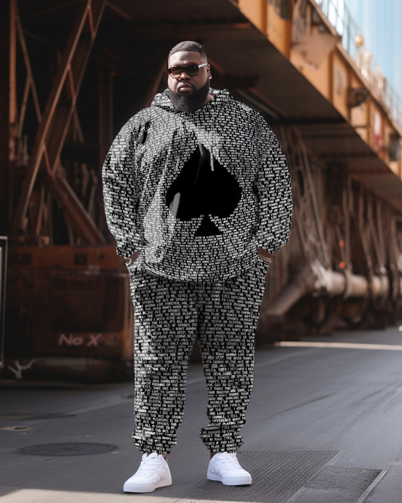 Men's Plus Size Casual Classic Alphabet Poker Hoodie Two-Piece Set