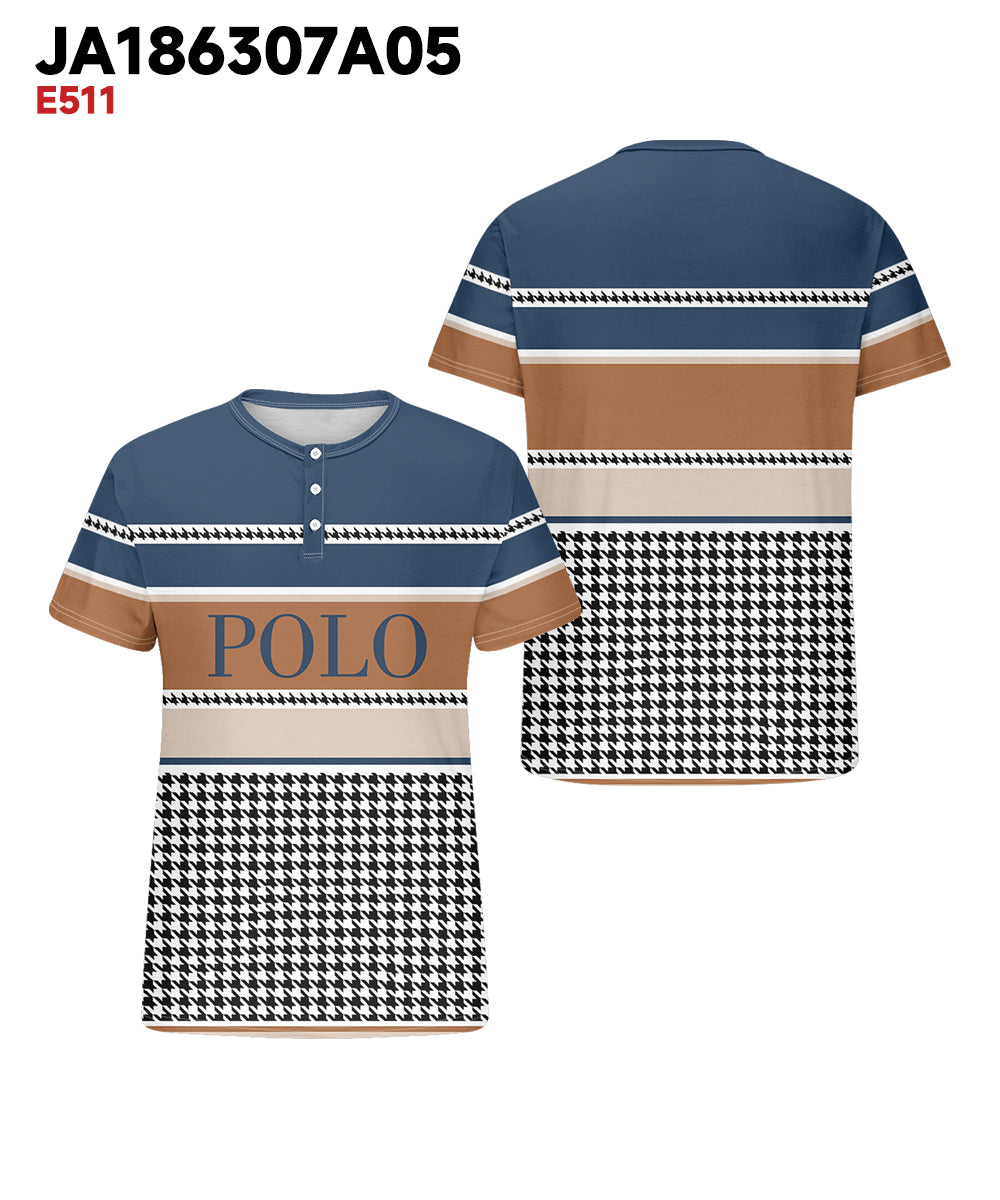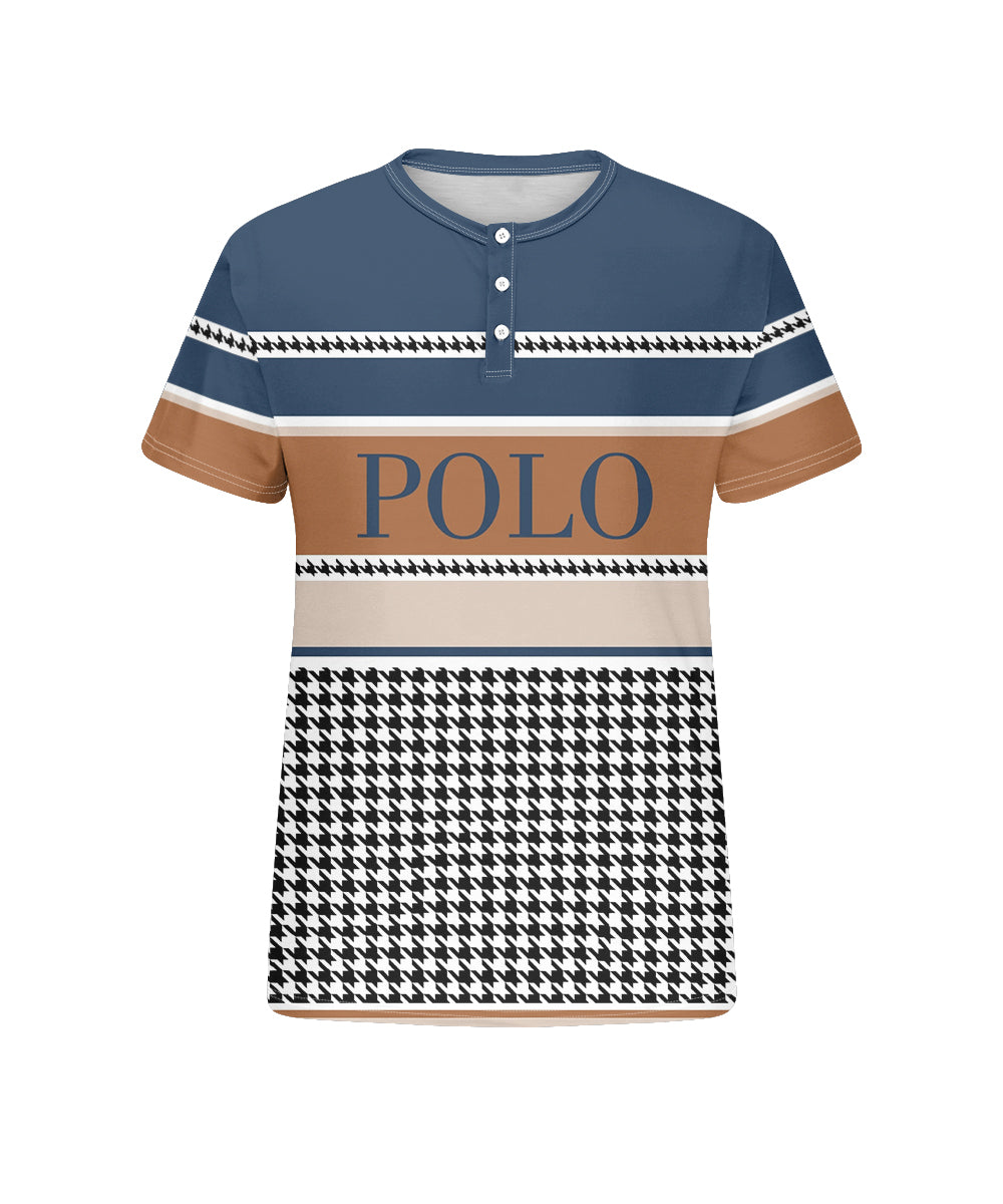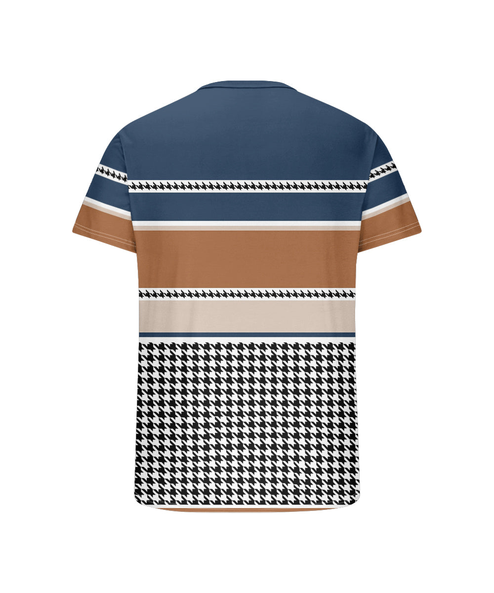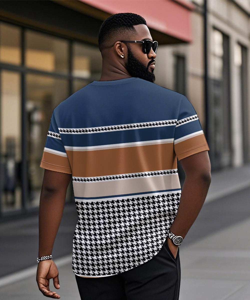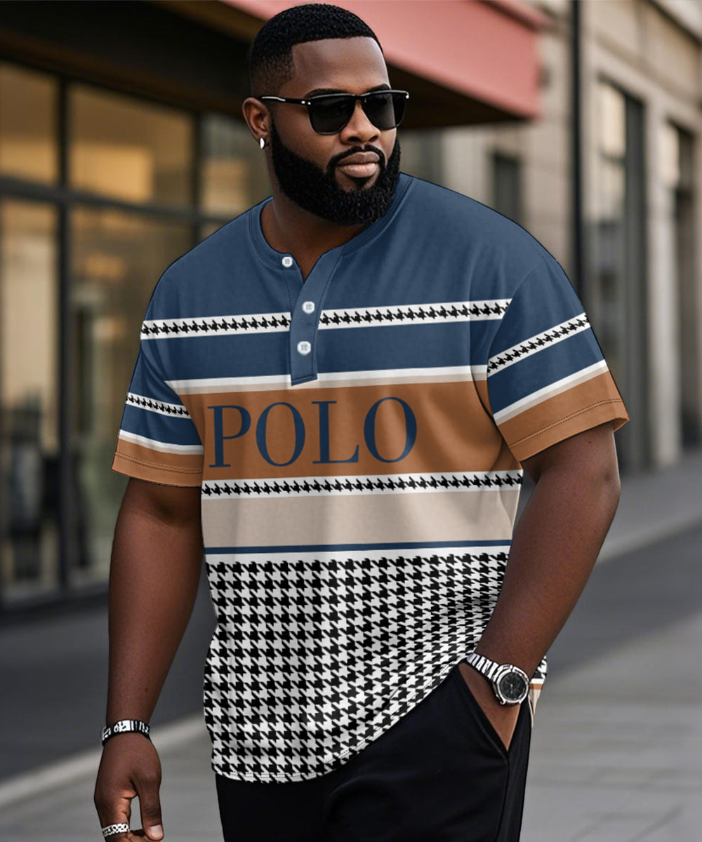 Men's Plus Size Casual Daily Blue Colorblock Houndstooth Print Henry Collar Button Short Sleeve T-Shirt