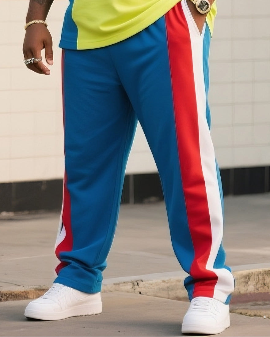 Men's Plus Size Casual Daily Simple Contrast Colorblock Short Sleeve Pants Suit