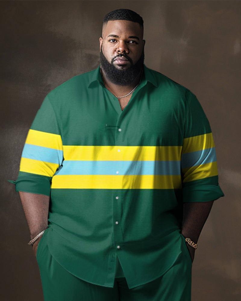 Embrace a fresh look with this men's big & tall walking set, featuring vibrant yellow color-blocking. Crafted from a 4-way stretch polyester blend, it offers comfort and flexibility. With a relaxed cut, this shirt easily adapts to various styles and occasions, whether worn solo or layered with other pieces.