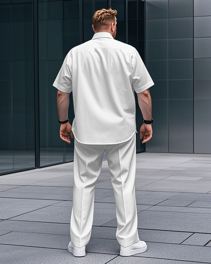 -Fabric: professional shirt blend fabric, soft and comfortable, no deformation.-Style: lapel short sleeve shirt pants suit.