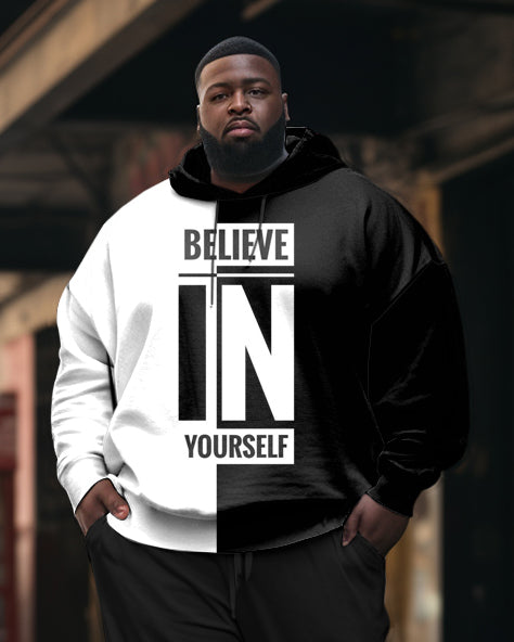 Elevate your streetwear game with this big & tall men’s two-piece set, where color-block panels frame the "BELIEVE IN YOURSELF" statement. The soft fleece with mechanical stretch moves with your body during urban adventures, while the strategic seam placement creates a flattering silhouette.
