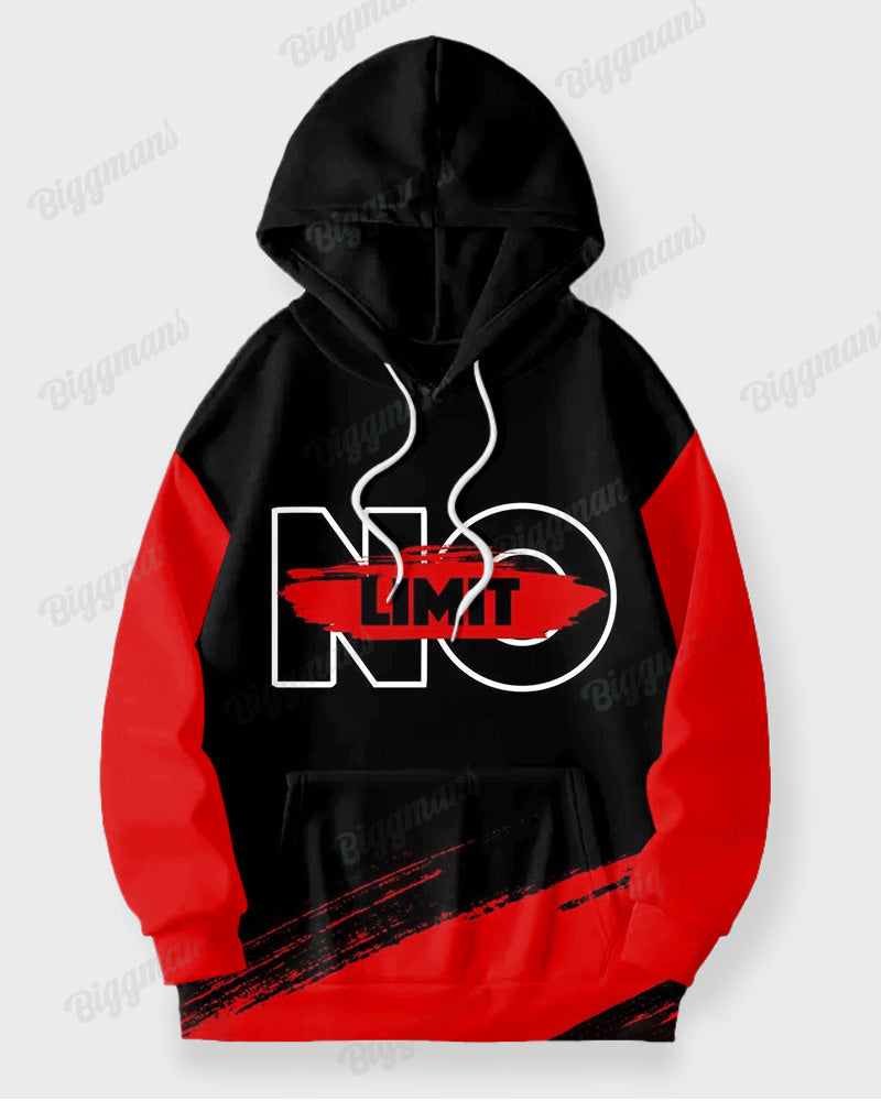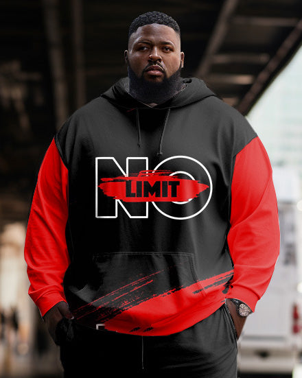 Embrace self-expression with this black hoodie set for big & tall men, featuring striking red color-block details and a standout "NO LIMIT" graphic print. The loose-fit set combines comfort with a powerful style statement. It pushes boundaries and showcases your individuality.