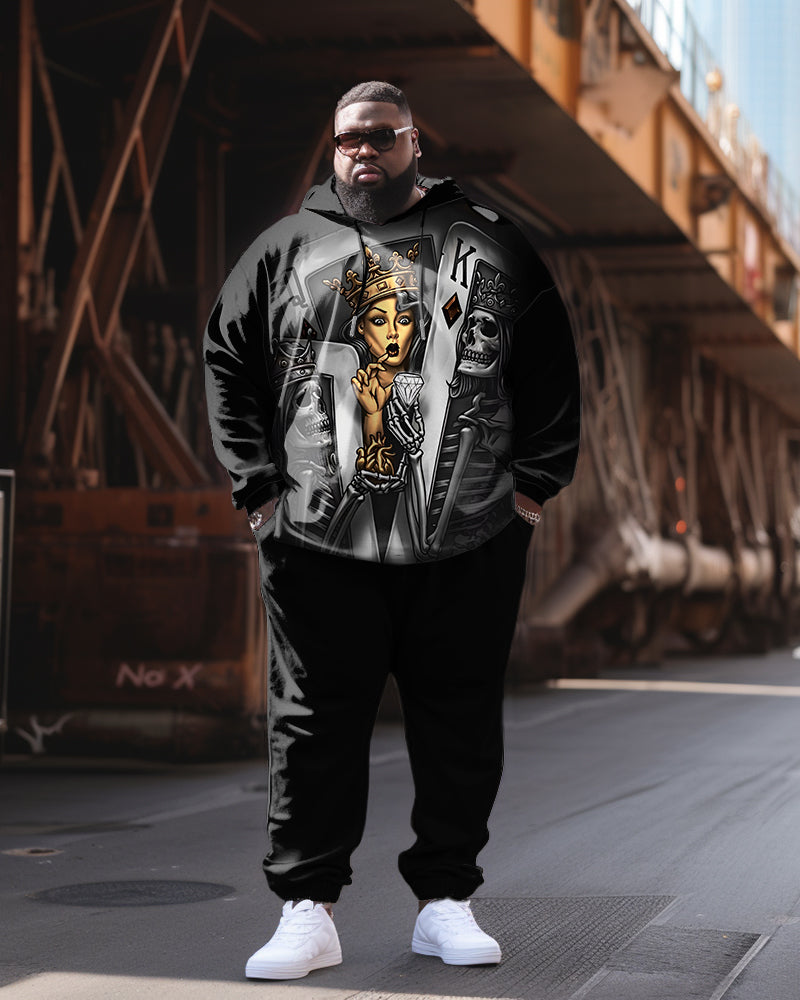 Level up your street style with the Big and Tall Men’s Hoodie and Pants Set. This bold two-piece tracksuit features a standout poker queen graphic on the hoodie and matching pants for a stylish, casual look. Crafted for comfort and flair, it’s perfect for everyday wear and casual outings.