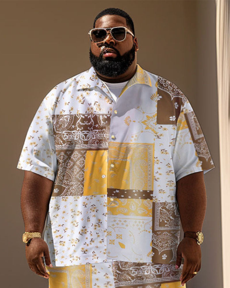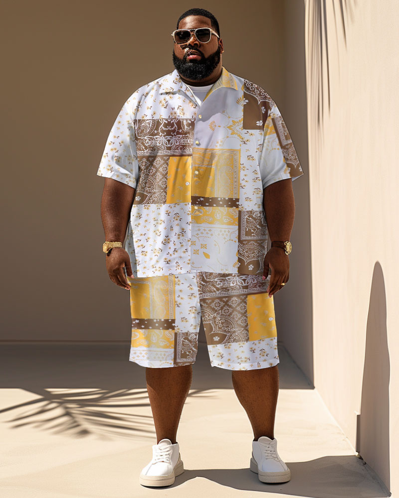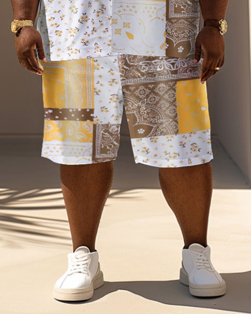 Men's Plus Size Casual Holiday Paisley Print Short Sleeve Shirt Shorts Suit