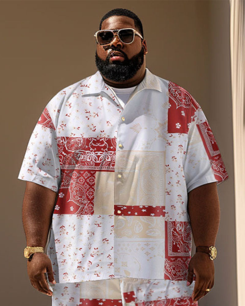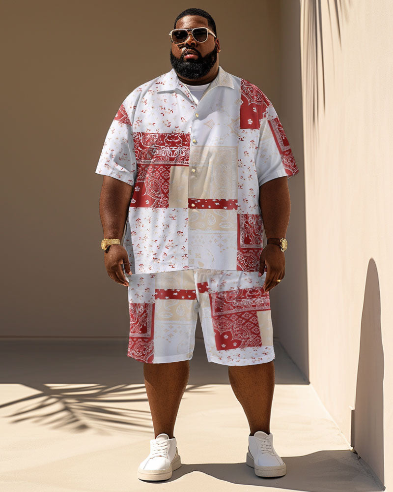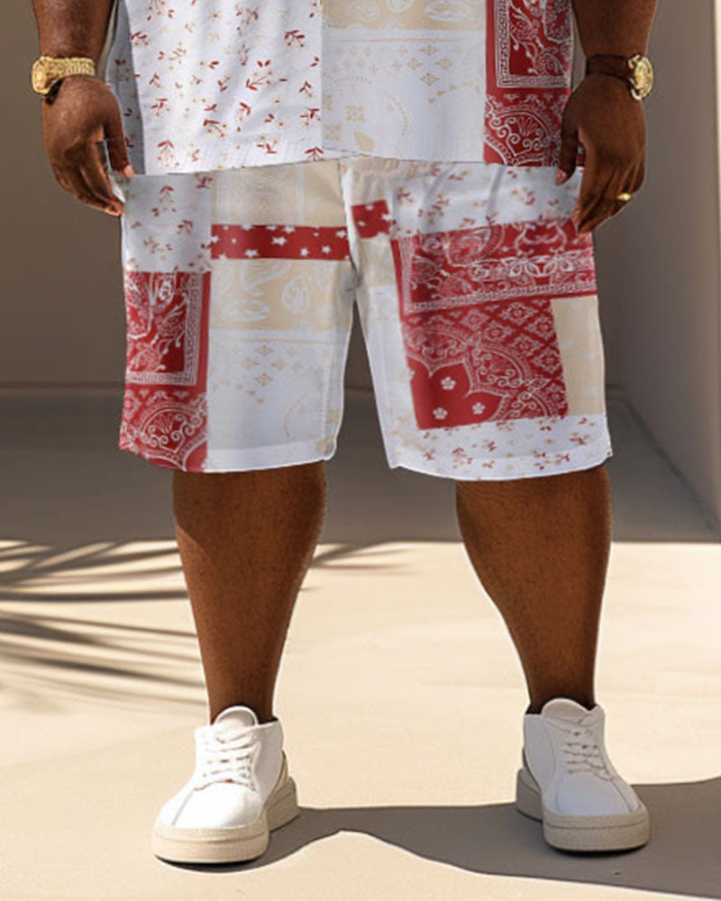 Men's Plus Size Casual Holiday Paisley Print Short Sleeve Shirt Shorts Suit