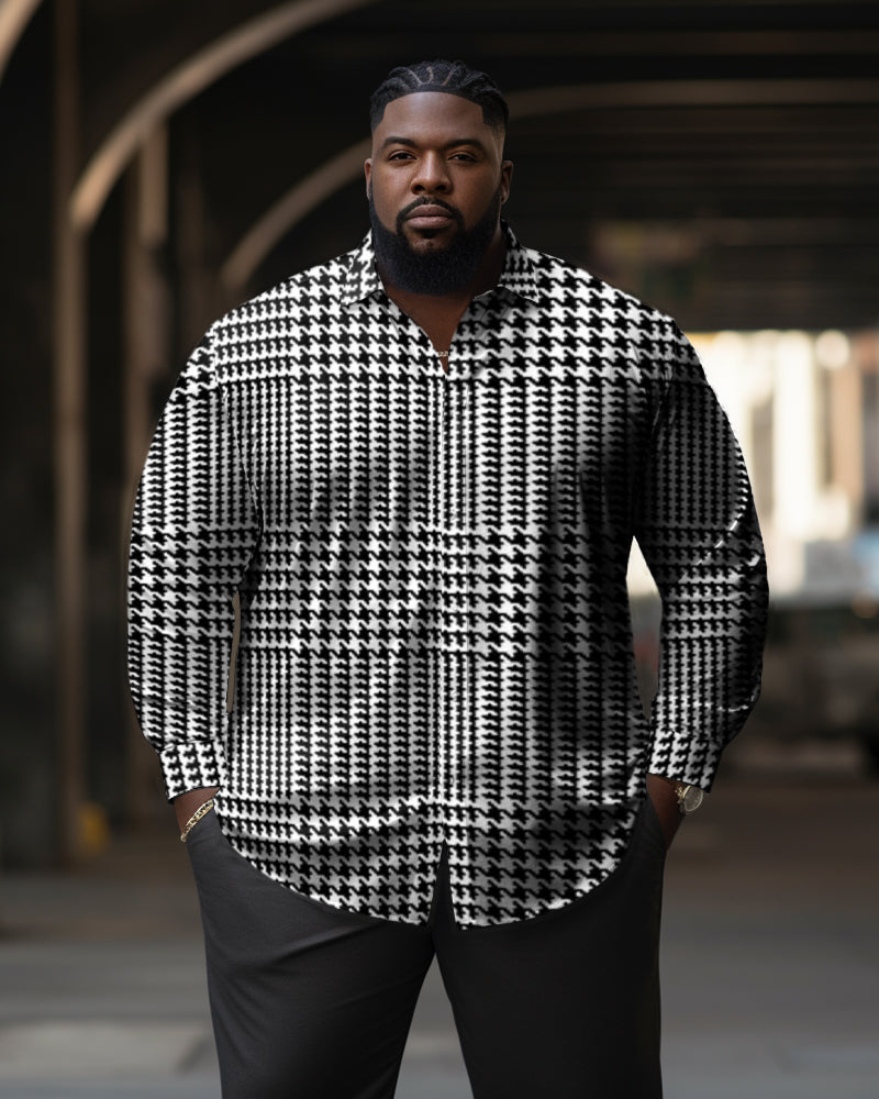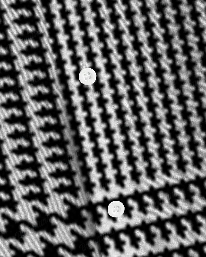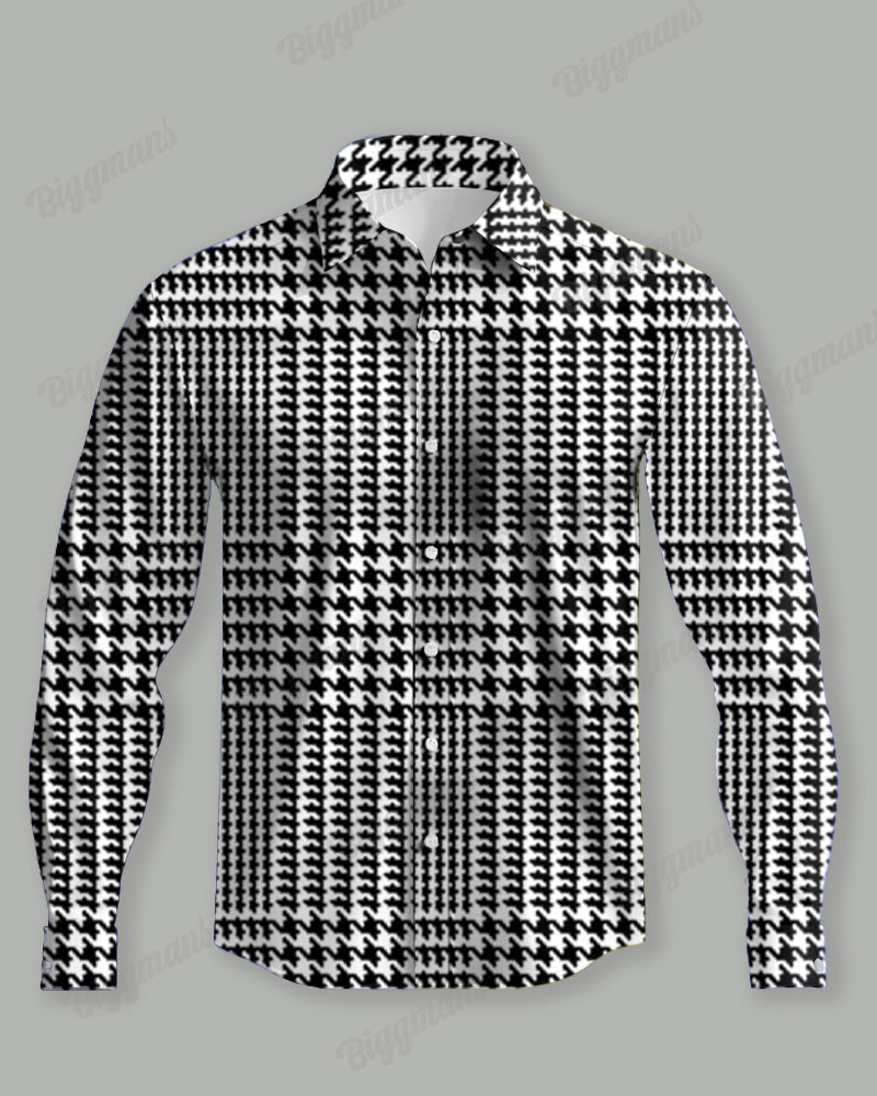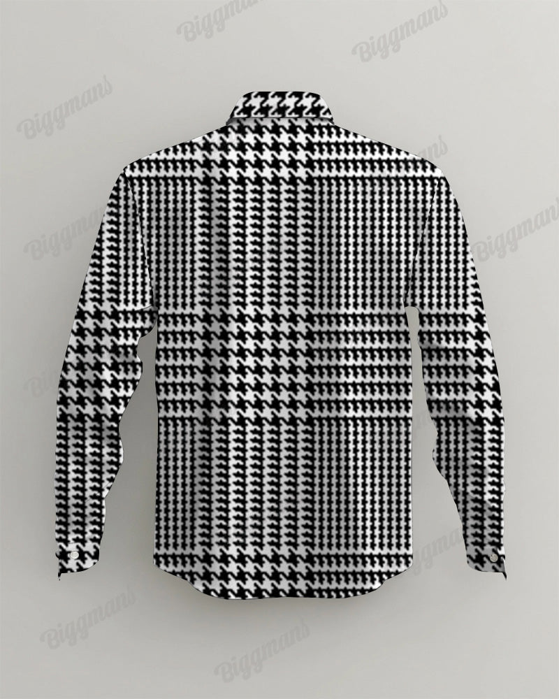 Feeling a little different about ? This men's long-sleeved shirt features a classic houndstooth print in a timeless black and white palette. Its relaxed fit ensures comfort while maintaining a refined silhouette. Combining sophistication with style, this shirt is versatile and suitable for formal and casual occasions.