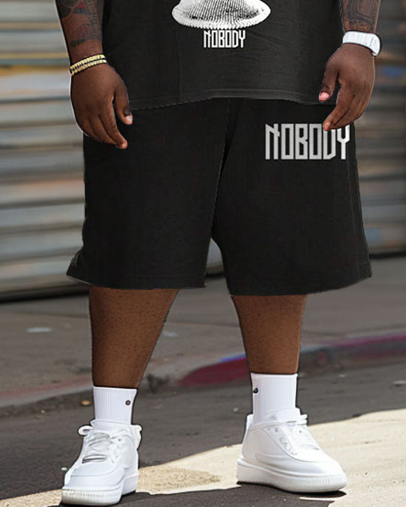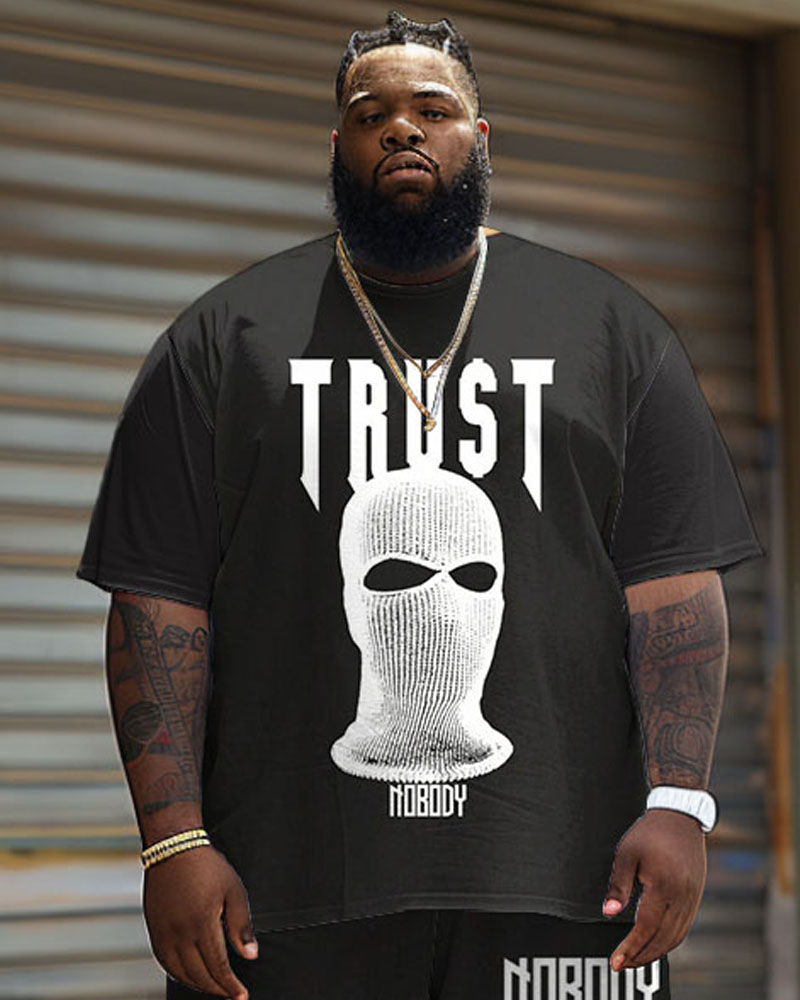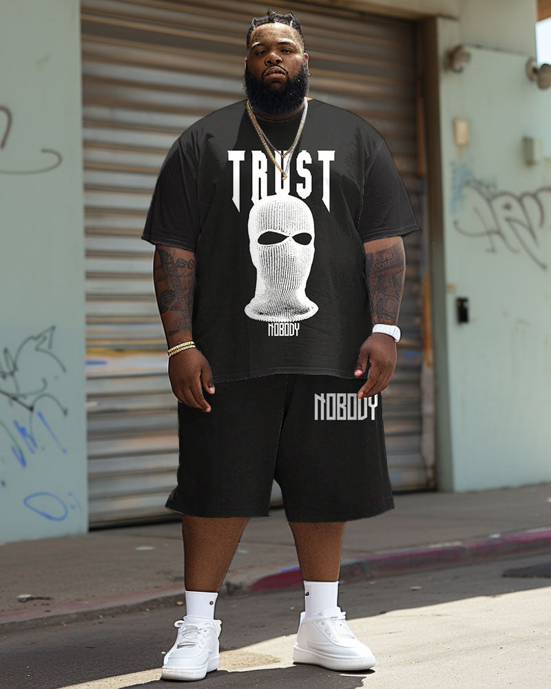 Men's Plus Size Casual Masked Headgear Trust Nobody Alphabet Print T-Shirt Shorts Suit