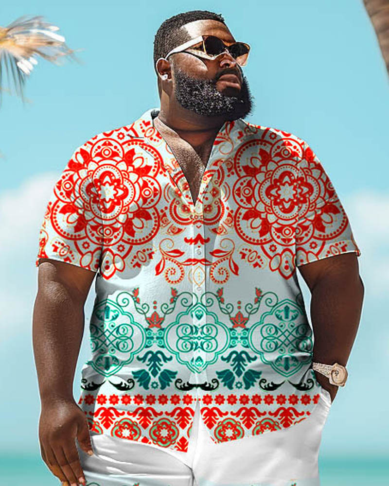The innovative fusion of floral prints and brings a different visual enjoyment. The retro floral make this men's big-size short-sleeve shirt and shorts set more appealing. With its versatile and unique design, it offers refreshment, comfort, and a creative fashion style.