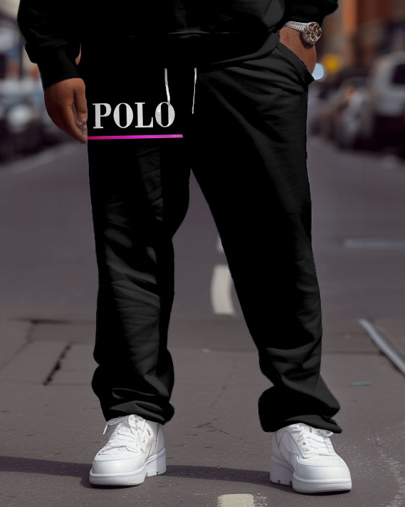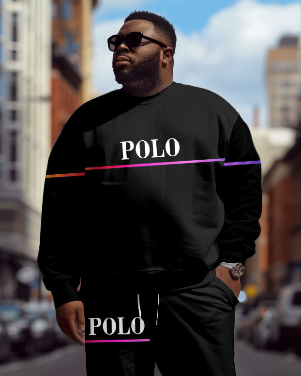 Keep it sleek and stylish with our two-piece set! The black base is a classic, but the POLO font and colorful striped details add a vibrant twist. This outfit with a loose-fit design effortlessly blends athletic and casual chic styles, creating a fashionable and comfortable look.