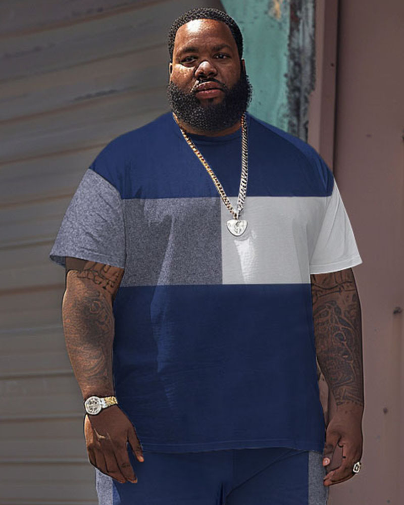 Embrace modern minimalism with this men's big & tall short-sleeved tee and shorts set, where tonal blue color-blocking creates artistic depth. The breathable stretch fabric and relaxed fit provide effortless comfort, while the geometric panels add subtle sophistication to many daily casual times.
