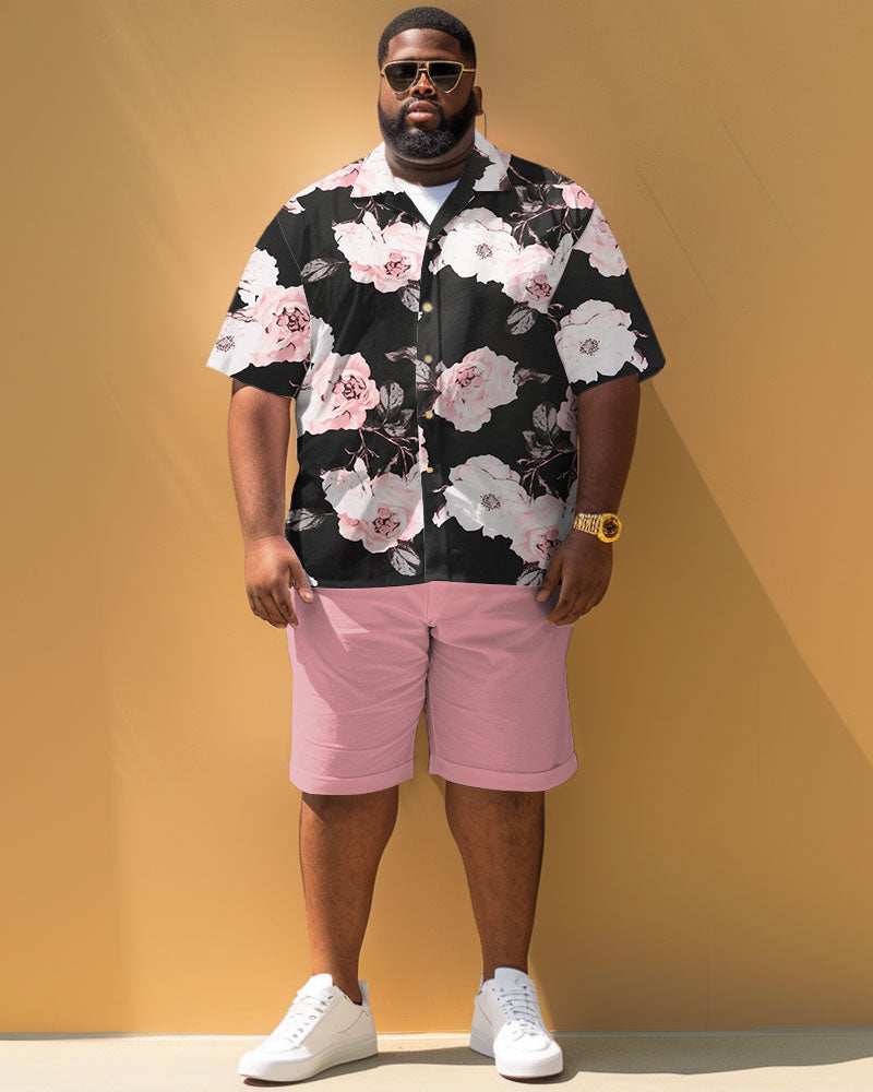 Men's Plus Size Casual Simple Floral Print Short Sleeve Shirt Shorts Suit
