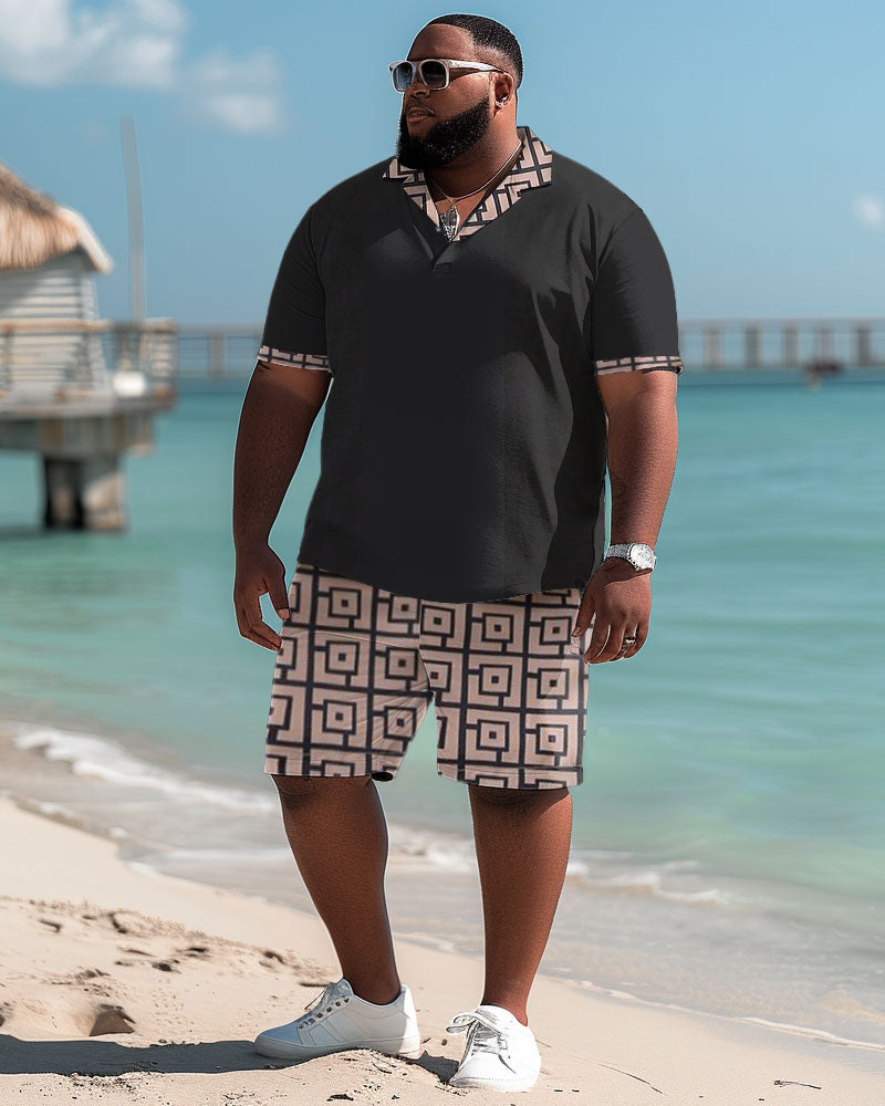 Stay effortlessly stylish with this big & tall men's two-piece set. It is elevated with khaki geometric accents, offering a subtle yet chic contrast. Crafted with classic design, this set brings modern flair. Perfect for casual outings, the relaxed fit and timeless style make it an easy go-to.
