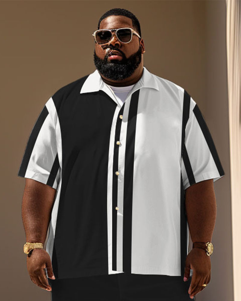 Simple but stylish, this big men’s shorts set is crafted in a chic black-and-white style. The shirt features an eye-catching irregular , adding a touch of modern flair. The loose fit ensures ease of movement throughout the day. Ideal for warm weather, this versatile ensemble is perfect for any occasion.