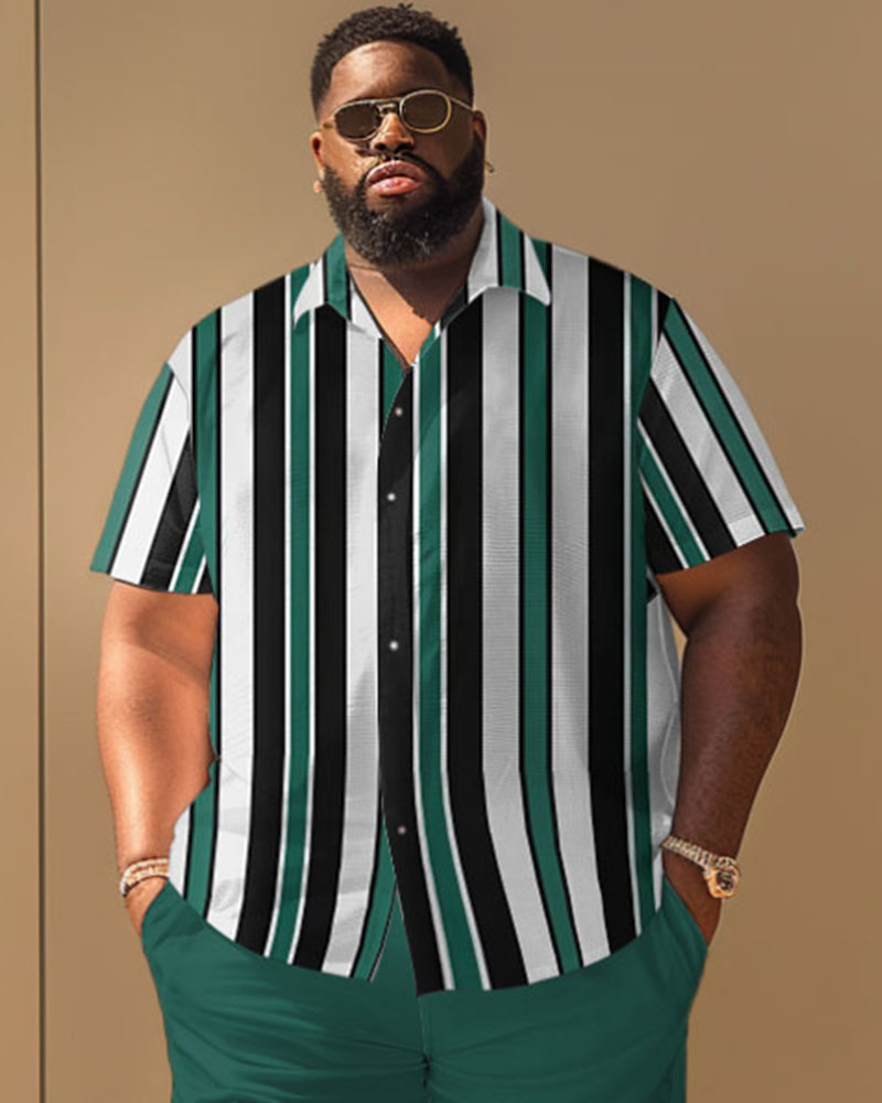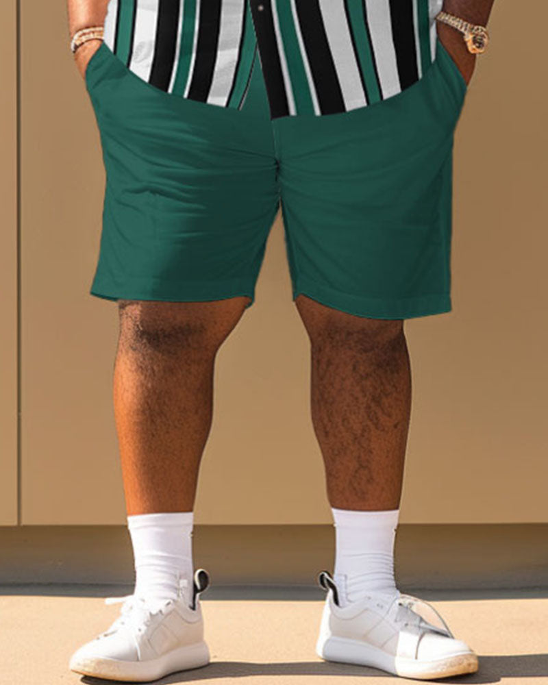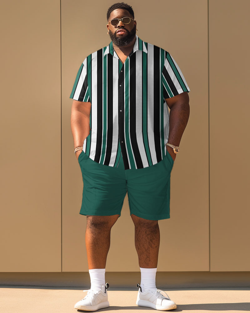 Men's Plus Size Casual Simple Striped Print Short Sleeve Shirt Shorts Suit
