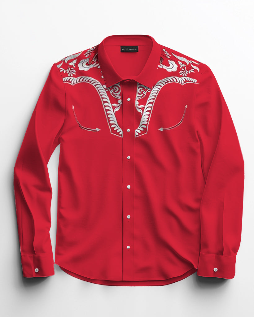 This big men's is sure to turn heads. Featuring totem and arrow motifs embroidered prints, it creates a classic Western garden-inspired vibe. The relaxed fit offers comfort, suitable for formal and casual occasions. It blends classic and modern influences, which is a standout piece for any wardrobe.