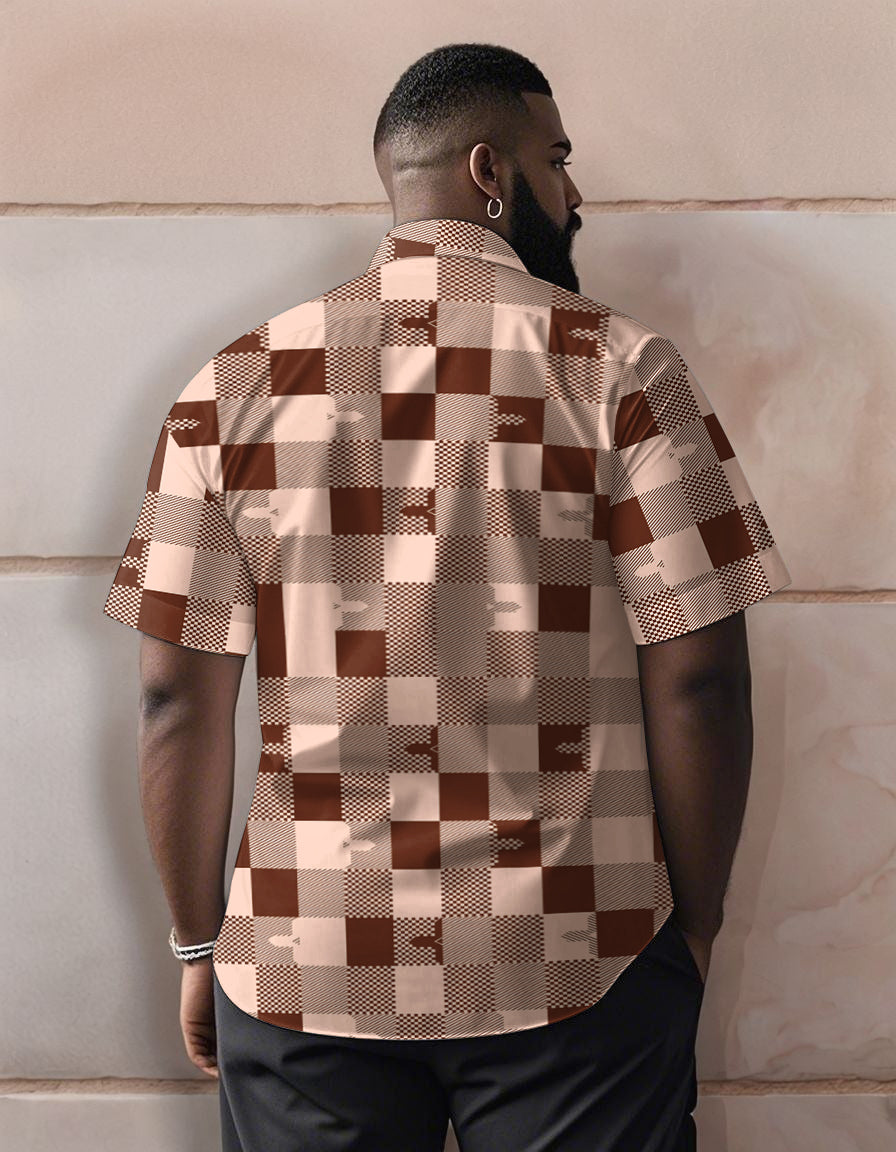 Men's Plus Size Checkered Texture Print Short Sleeve Shirt