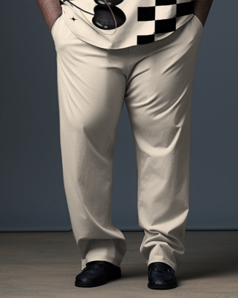This khaki-colored big guy's 2-piece set creates a unique blend of cute and timeless fashion elements. The zippered polo collar adds a modern twist. Versatile enough for multiple occasions, it strikes the perfect balance between simplicity and fashion-forward design.