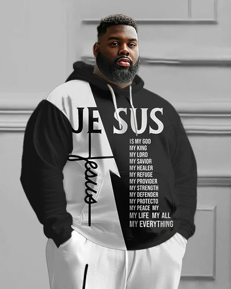 Make a bold statement with this , featuring a powerful Bible print. The black-and-white design adds a modern twist to a cultural symbol, bringing fashion and meaning. Designed for comfort and style, this set is good for showcasing your individuality.