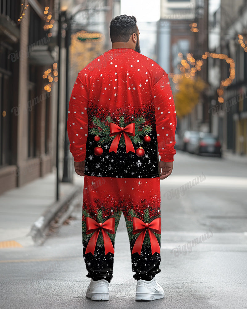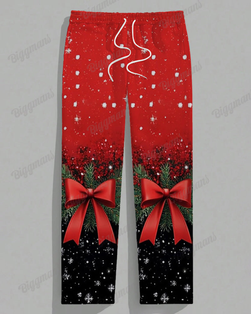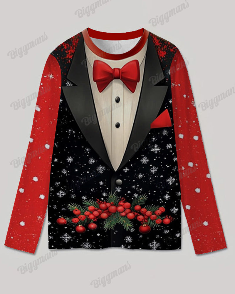Men's Plus Size Christmas Cosplay Bow Suit Printed Long Sleeve T-Shirt Trousers Suit
