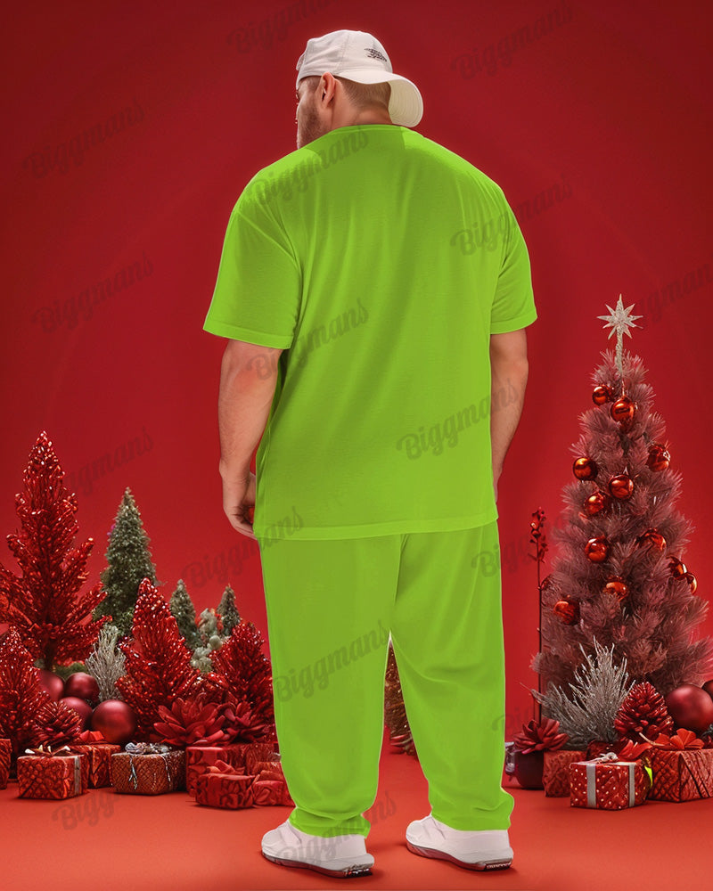 This set is designed for Christmas! The green short-sleeved t-shirt features a brightly colored Santa Claus print and is paired with green pants. With a white beard and other accessories, you can instantly transform into a jolly Santa Claus when you wear it, perfect for Christmas parties.