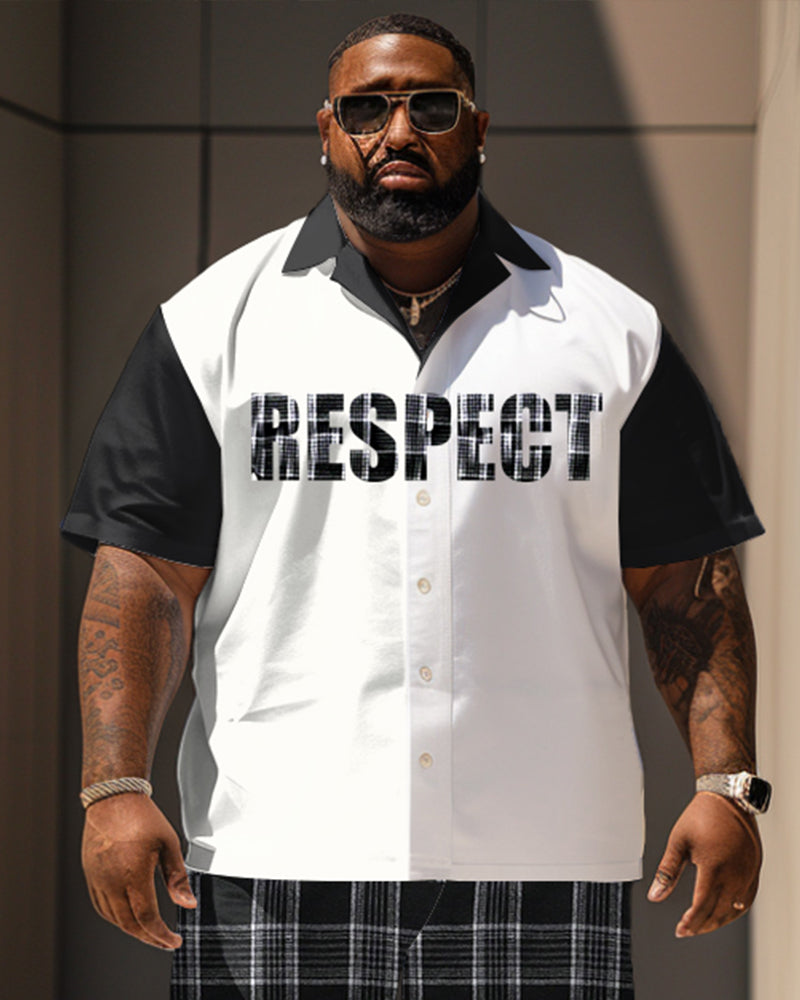 Men's Plus Size Classic Plaid Respect Short Sleeve Shirt Shorts Suit