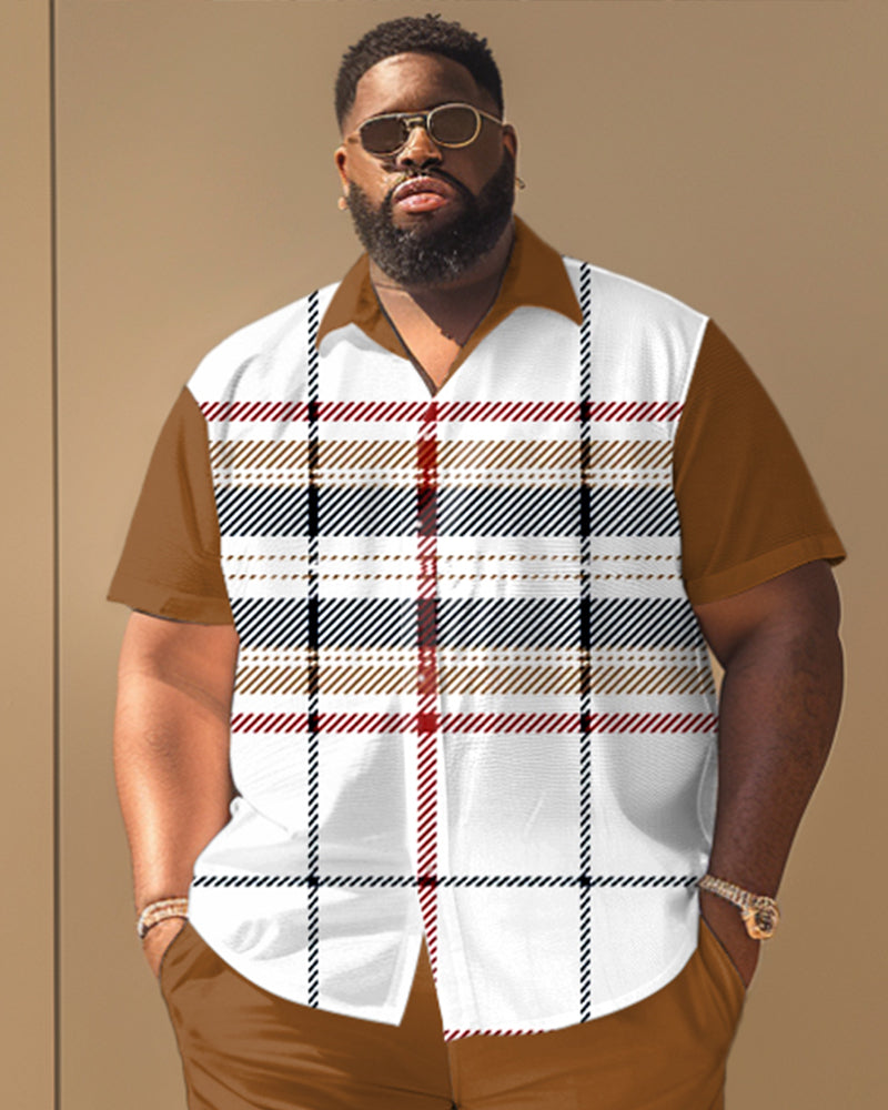 This combines classic style and modern fashion. It features a chic khaki and white checkered pattern and is designed for comfort and versatility. This set offers a perfect fit with its loose cut. Ideal for big men, this set is a wardrobe staple for any occasion.