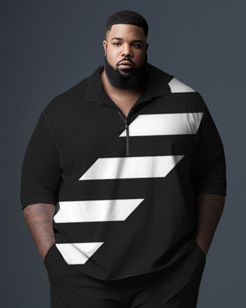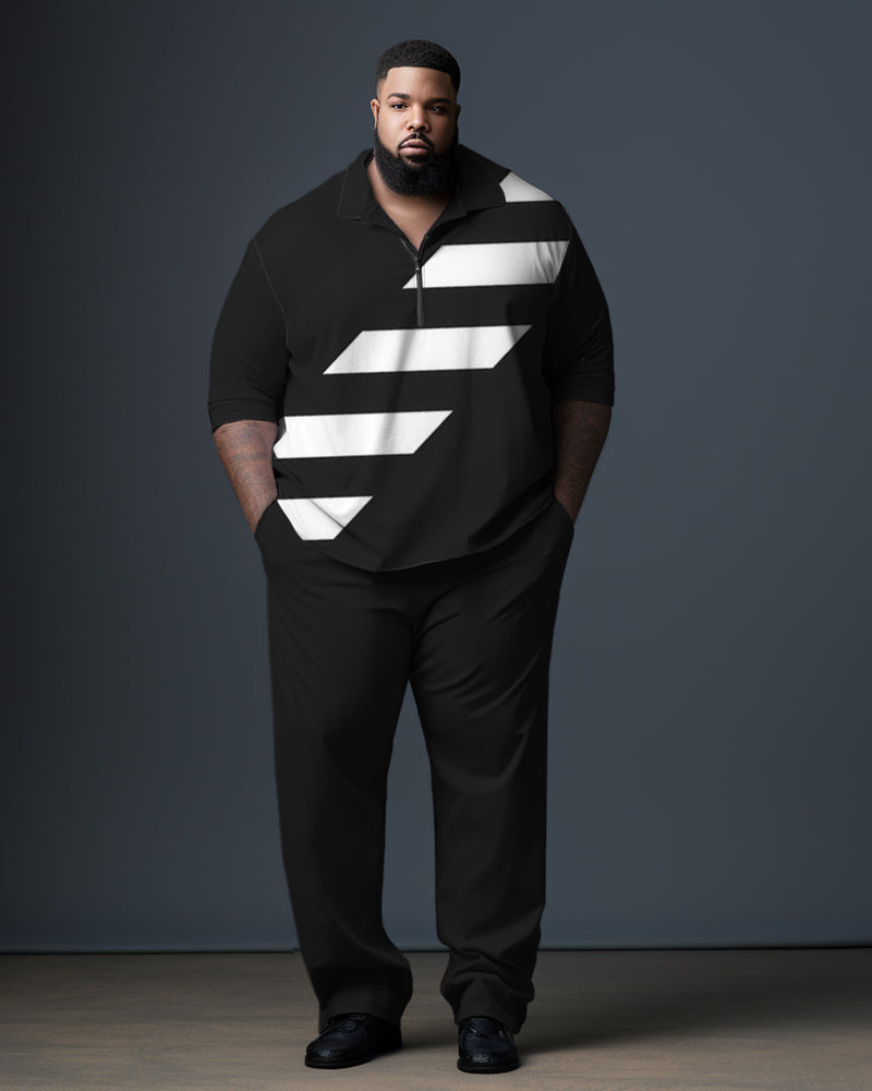 This big & tall men’s polo tracksuit features a timeless black-and-white palette, elevated with a zip-up collar. Designed with a tailored-yet-relaxed silhouette, it blends comfort and modern polish. From casual days to elevated nights, this set adapts effortlessly—proof that understated style speaks the loudest.