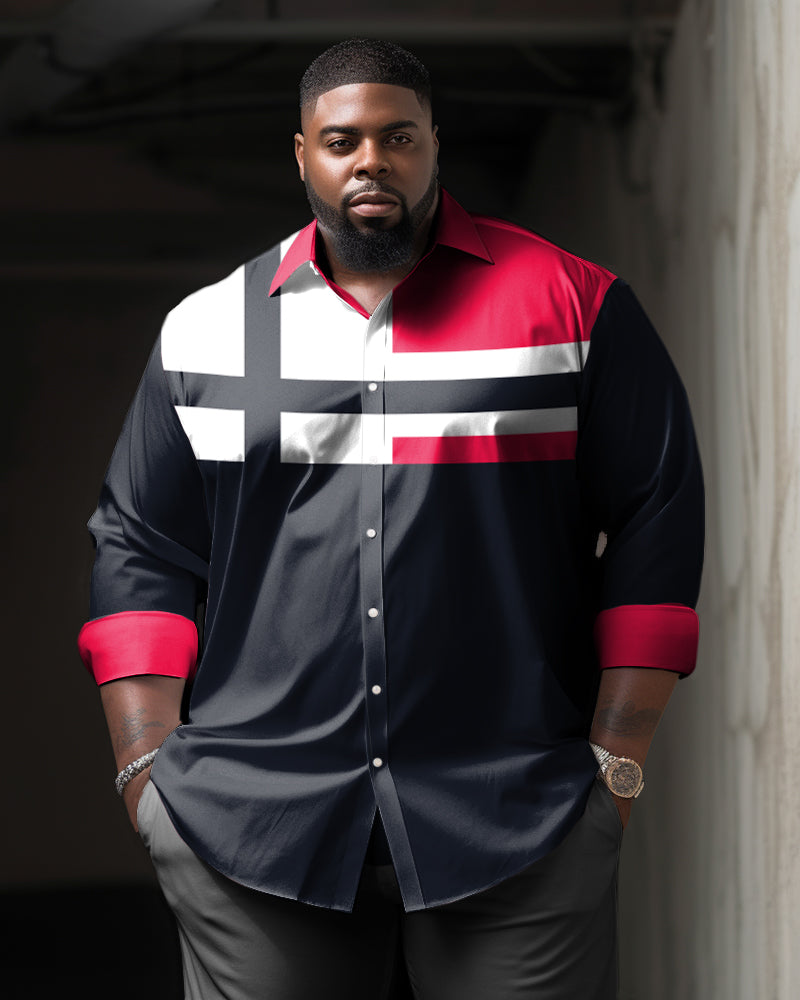Men's Plus Size Cross Stripes Long Sleeve Lapel Shirt