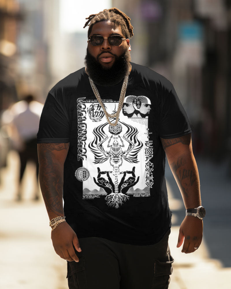 Men's Plus Size Cultural Totem Music Festival Hip Hop Round Neck Short Sleeve T-Shirt