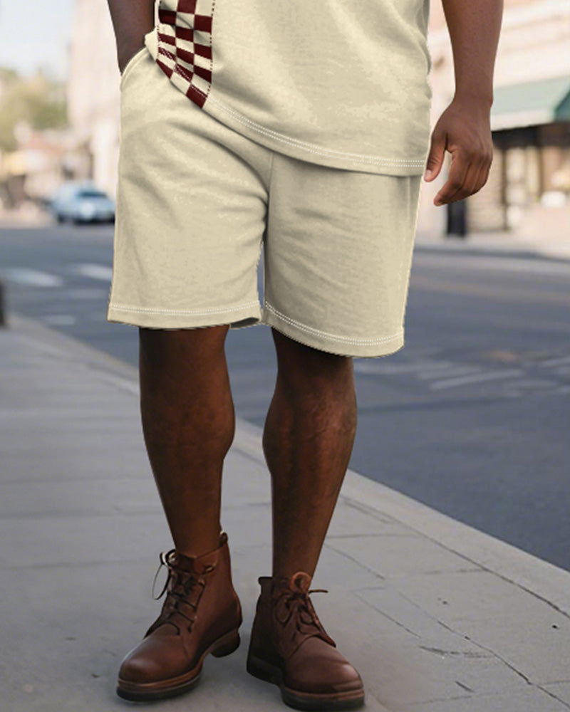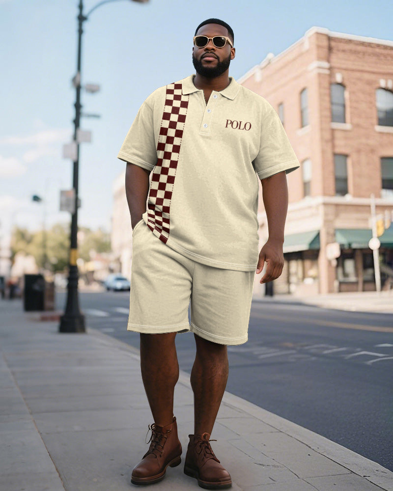 Men's Plus Size Daily Apricot Plaid Alphabet Print Short Sleeve Polo Shirt Shorts Suit