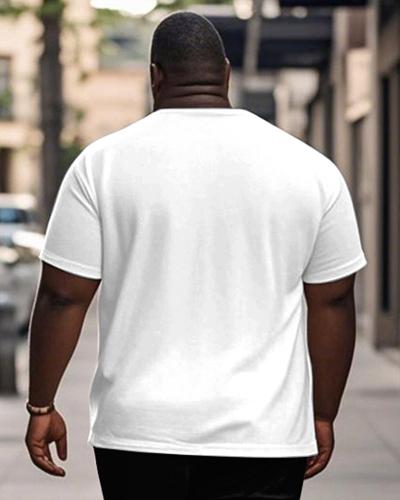 Men's Plus Size Daily Casual Black And White Eagle Print Henry Collar Button Short Sleeve T-Shirt