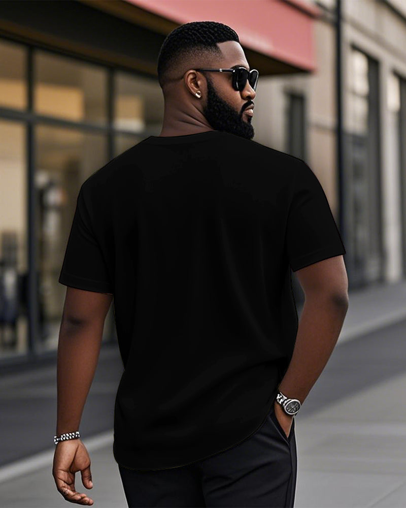 Men's Plus Size Daily Casual Black And White Striped Geometric Print Henry Collar Button Short Sleeve T-Shirt
