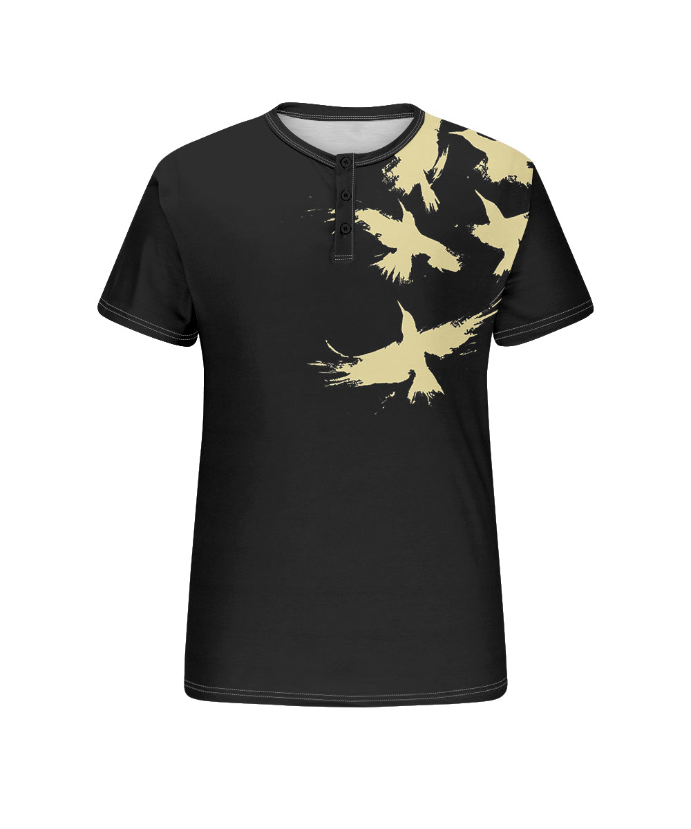 Men's Plus Size Daily Casual Black Bird Print Henry Collar Button Short Sleeve T-Shirt