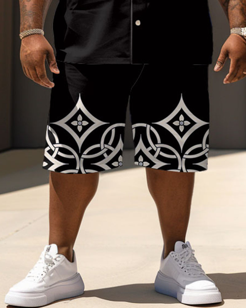 Men's Plus Size Daily Casual Black Diamond Geometric Print Shirt Shorts Suit