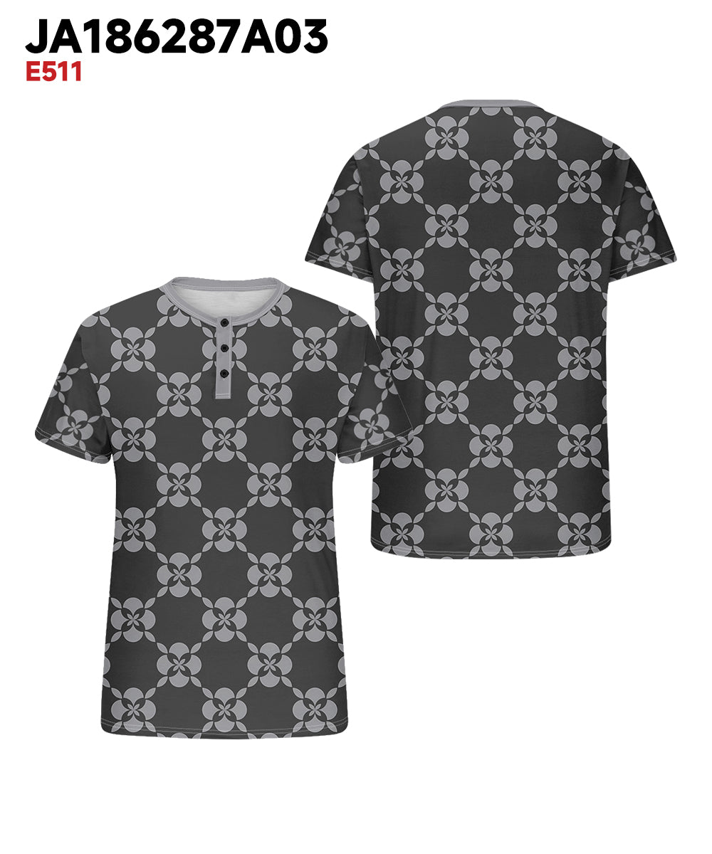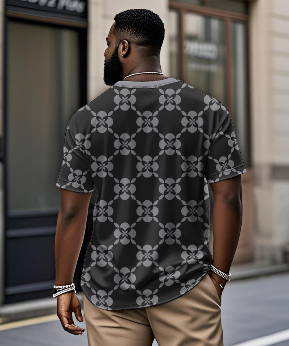 Men's Plus Size Daily Casual Black Grey Diamond Geometric Print Henry Collar Button Short Sleeve T-Shirt